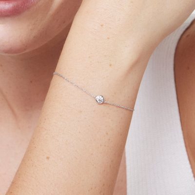 Easy, breezy, and effortless – this is the perfect everyday bracelet. Available in 14k white or yellow gold, the ¼ carat stone is held in a of-the-moment bezel setting. Pair with studs and pendants from our bezel collection for a complete look.