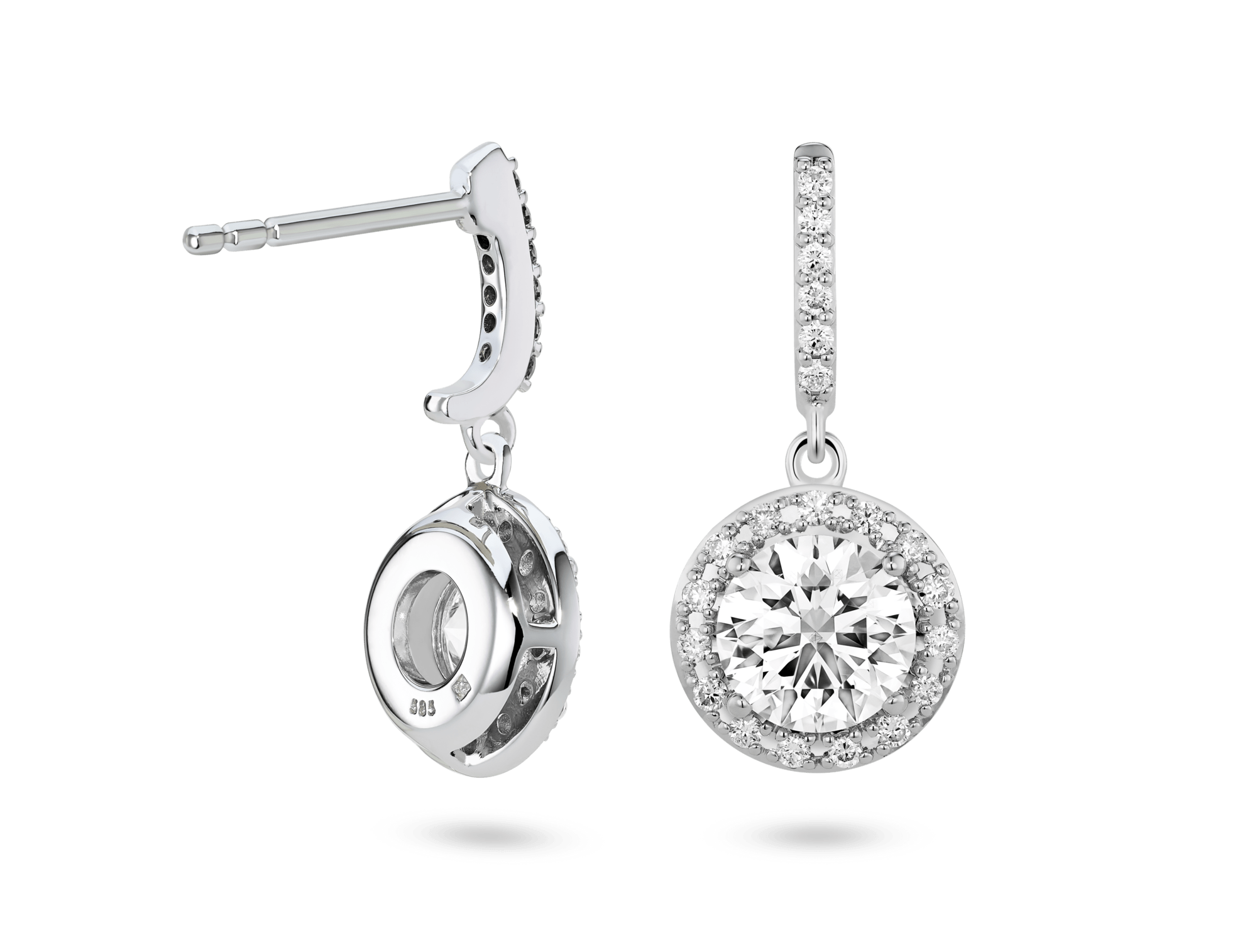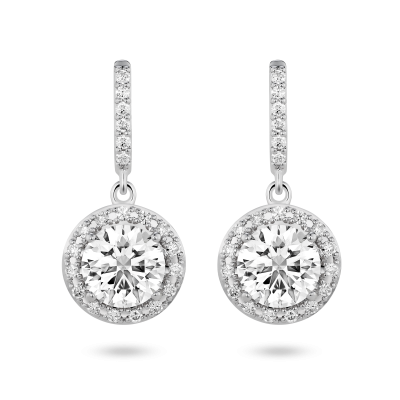 Introducing the most elegant halo drop earrings that will make you feel regal. With each of our white Lightbox stones being of VS+ clarity, Very Good cut and Near Colorless you are guaranteed a magnificent sparkle. These are the perfect earrings to add a wow-worthy moment to your outfit.