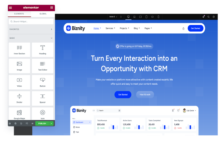 Biznity is 100% responsive to make your website look beautiful in all major devices, adapting seamlessly to different screen sizes.