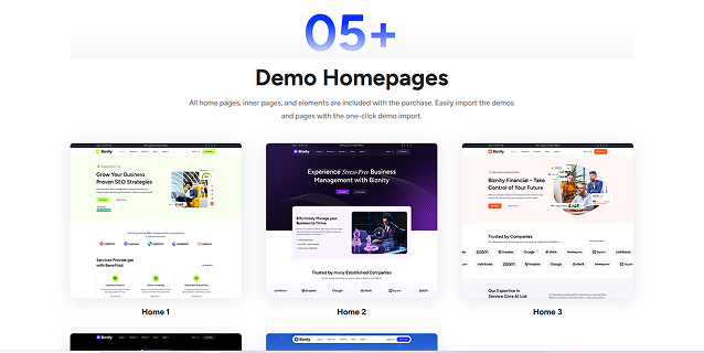 Choose from 08+ pre-made website demos to get your business going in no time, ensuring a professional and efficient launch.